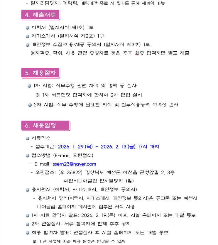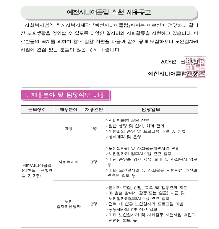 예천시니어클럽 직원(사회복지사및 일자리 담당자)채용